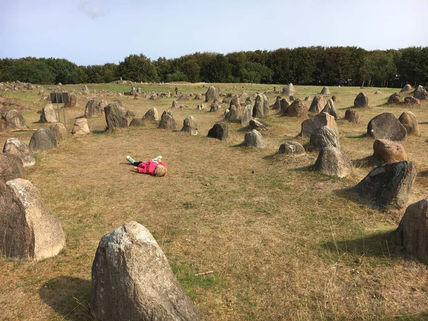 Eenmaal buiten is er een groot veld met stenen. Zonder de voorgaande uitleg was het niet meer dan dat. Dus daarom adviseer ik je ook zeker het museum te bekijken. ‘Waren de Vikingen reuzen?’, ik snap de vraag wel, want sommige van de graven zijn echt enorm. Waarschijnlijk waren dit belangrijke mensen die dus een grote brandstapel en veel giften meekregen. Mijn dochter is ernstig teleurgesteld dat ze niet zelf mag graven naar een schat en bedenkt zich dat archeoloog ook wel een leuk beroep is. Bekijk voor openingstijden en prijzen de website.