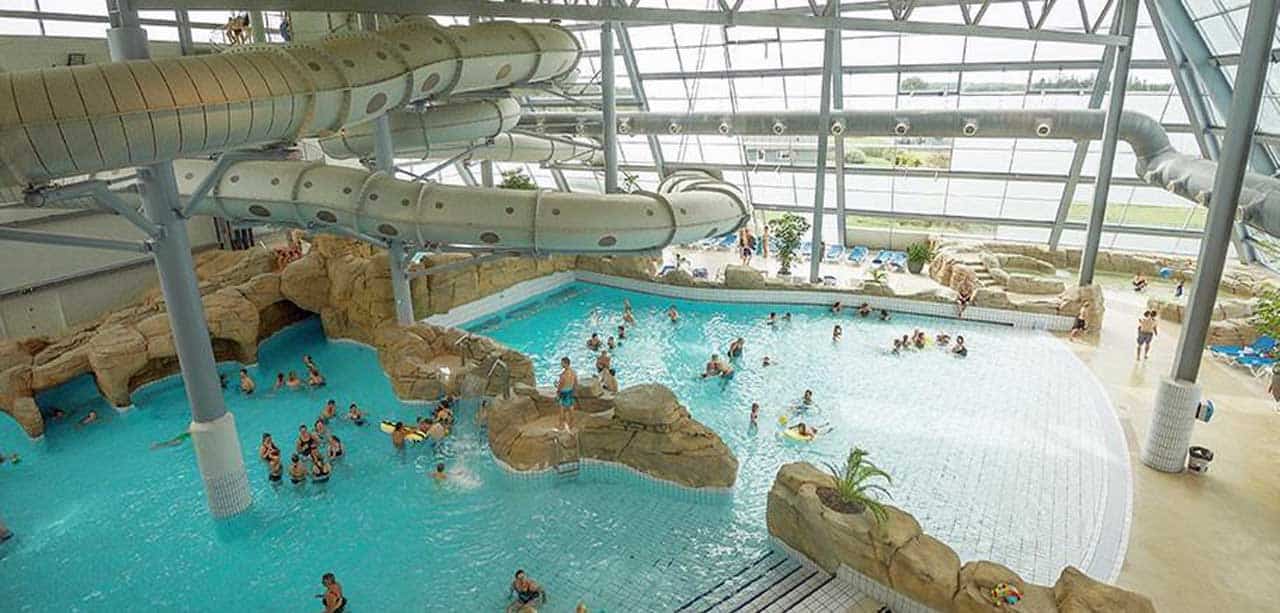 Een deel van de plas bevat een houten zwembad met duikplanken. Dit deel is dieper zodat hier veilig gedoken en gesport kan worden. Een stukje land is de scheiding tussen de plas en de rivier. Langs het water ligt een fietspad, of ga zelf de rivier op met een kajak die je hier kunt huren. Er zitten hier ook meerdere restaurantjes die alleen niet altijd open zijn. Helemaal bijzonder is de sauna waarvan je direct daarna in de rivier kunt springen om af te koelen. Mijn dochter ziet een hoge glijbaan en dus nemen we de trap omhoog. Hier wacht nog een leuke verassing. ‘Mama, kijk hoe hoog!’ Het dak bestaat uit een zacht speelveld met trampolines en vanaf hier glij je zo een verdieping omlaag.