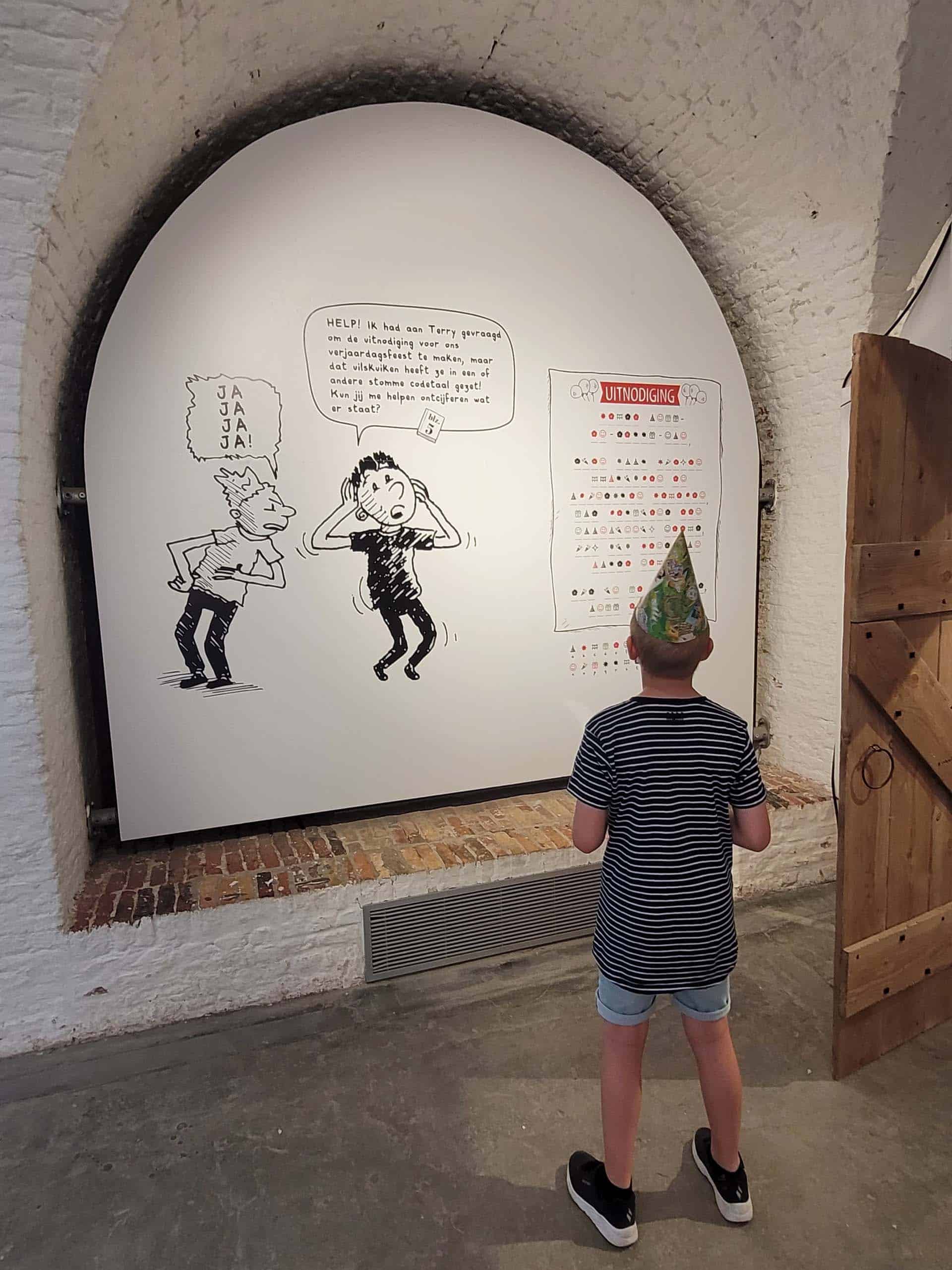 Die heeft iets heel anders aan zijn hoofd: in het fort is een tijdelijke, interactieve doe-expo over de Waanzinnige Boomhut. Laat dat nu net een van zijn lievelingsboeken zijn! Terwijl wij ons onderdompelen in de geschiedenis van het fort, rent hij heen en weer om letters te verzamelen, een hindernisparcours te overwinnen en met een katapult te schieten!