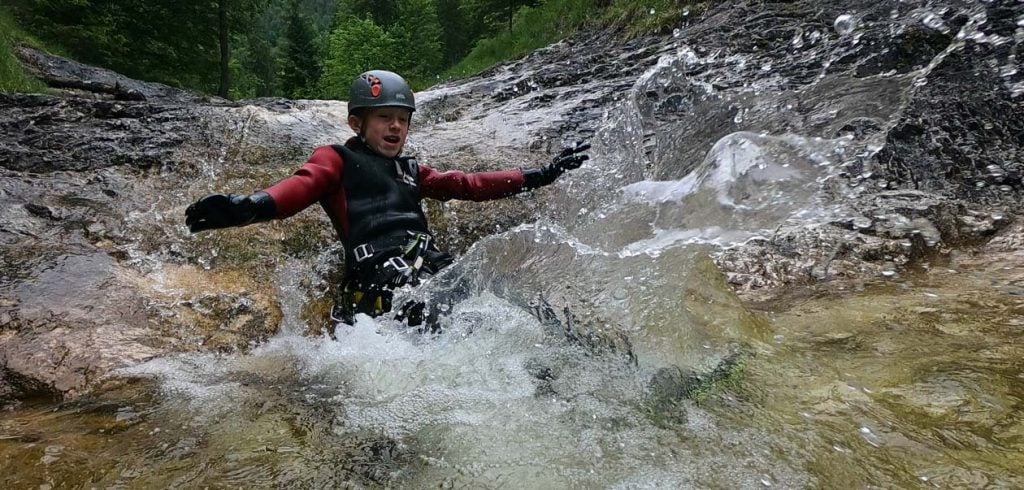 De canyoning tour voor gezinnen is te boeken bij Alpinschule 4 elemente. De tour duurt in totaal ongeveer 3 uur (inclusief omkleden en wandeling naar de rivier). De minimumleeftijd voor de canyoning tour is 10 jaar. Je kind moet ook goed kunnen zwemmen. De uitrusting (wetsuit, veiligheidshelm, gordel en schoenen) zijn bij de canyoning tour inbegrepen. Je moet zelf een handdoek en badkleding meenemen.
