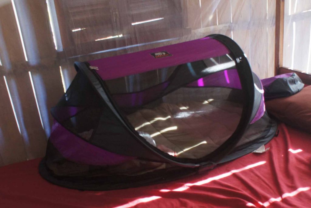 Behalve malaria brengen muggen nog een heleboel andere ziektes over zoals dengue. Wil je gezond op reis met baby dan moet je zorgen dat je kindje goed beschermd is. Onze dochter slaapt in een Deryan tentje waar muggengaas is ingebouwd. Daarnaast goed smeren met antimuggenmiddeltjes speciaal voor kinderen. Mocht je kiezen voor een hotel met babybedje kan je altijd zelf nog een speciale klamboe voor campingbedjes meenemen.