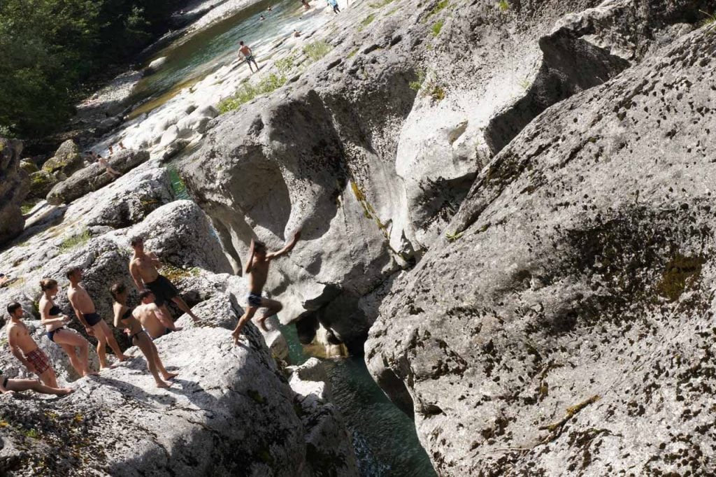 De rivier die door de canyon loopt is een populaire zwemplek bij de lokale bevolking. Gezinnetjes zoeken een rustig strandje op terwijl tieners van de rotsen in de kloof springen. Je kunt dus makkelijk een hele dag doorbrengen rondom Lovagny. De kiezels kunnen best hard zijn dus mocht je waterschoenen bij je hebben neem ze mee.