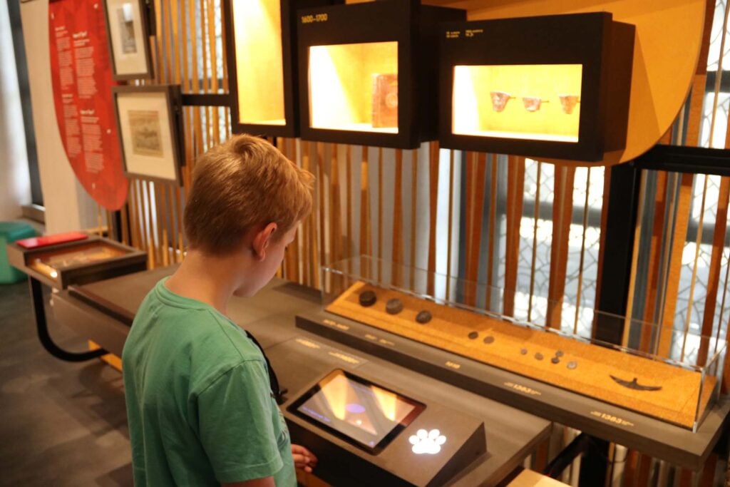 Het Yper Museum is opvallend kindvriendelijk. Esmeralda’s zoon kreeg bij binnenkomst een kattenpoot-armbandje waarmee hij spelletjes kon activeren, filmpjes starten en opdrachten uitvoeren. Vooral het kattenparcours, waarbij je katten moet zoeken die zich door het hele museum verstoppen, viel erg in de smaak. Volgens Esmeralda is het museum leuk voor kinderen vanaf ongeveer zes jaar. Je bent er ongeveer anderhalf uur zoet en hoeft niet te reserveren. Meer info en openingstijden vind je op de website van het Yper Museum.