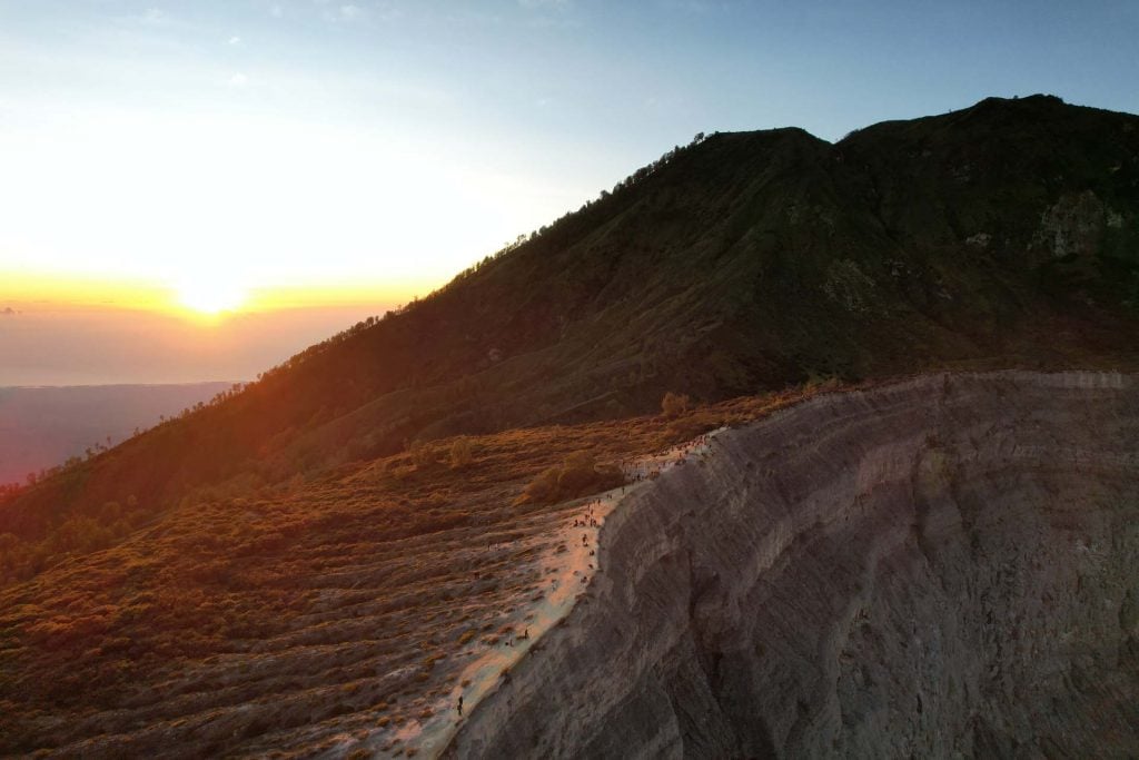 De Kawah Ijen vulkaan beklimmen is avontuurlijker en je kunt dit doen vanuit Banyuwangi, hier vertrekken ook de boten naar Bali. Je vertrekt midden in de nacht en klimt in het donker naar boven voor de zonsopkomst. Met jonge kinderen zou ik het niet doen, maar met onze dochter van toen negen ging het ook prima. Boven wacht een uitzicht op het fantastische blauwe kratermeer waar gele zwaveldampen omheen hangen. Je kunt ’s nachts of overdag ook afdalen tot het meer. In de nacht kun je hier het “blauwe vuur” zien, een bijzonder natuurfenomeen.