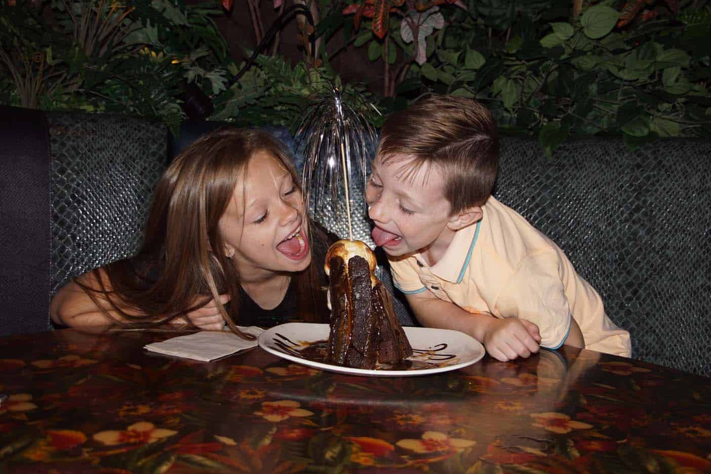 Het Rainforest Café is een restaurant waar je je middenin de jungle waant. Tussen de bomen en bladeren in het restaurant zitten allerlei nep dieren verstopt, van olifanten tot slangen en apen. Elk half uur gebeurt er iets bijzonders: de lichten gaan uit in het restaurant, het gaat onweren, je hoort het heel hard regenen en het lijkt of alle dieren tot leven komen. Onze kinderen vinden het altijd een geweldige ervaring als we er gaan eten. Het Rainforest Café heeft een uitgebreide kaart met allerlei soorten gerechten. Wij verheugen ons altijd erg op de “Volcano”, een dessert van brownies, ijs, gesmolten marshmallow en heel veel chocolade.