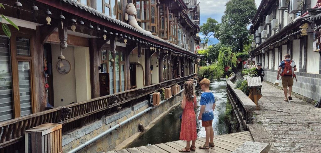 Als je net aankomt in Lijiang met kinderen en je ziet alle kanaaltjes en bruggetjes in de autovrije eeuwenoude binnenstad, begrijp je direct waarom deze stad ‘het Venetië van het Oosten’ wordt genoemd. Tijdens onze treinreis met kinderen door de provincie Yunnan in China verbleven we hier een paar dagen in dit mooie oude stadje. Lees hier wat je met kinderen in Lijiang en omgeving kunt doen.