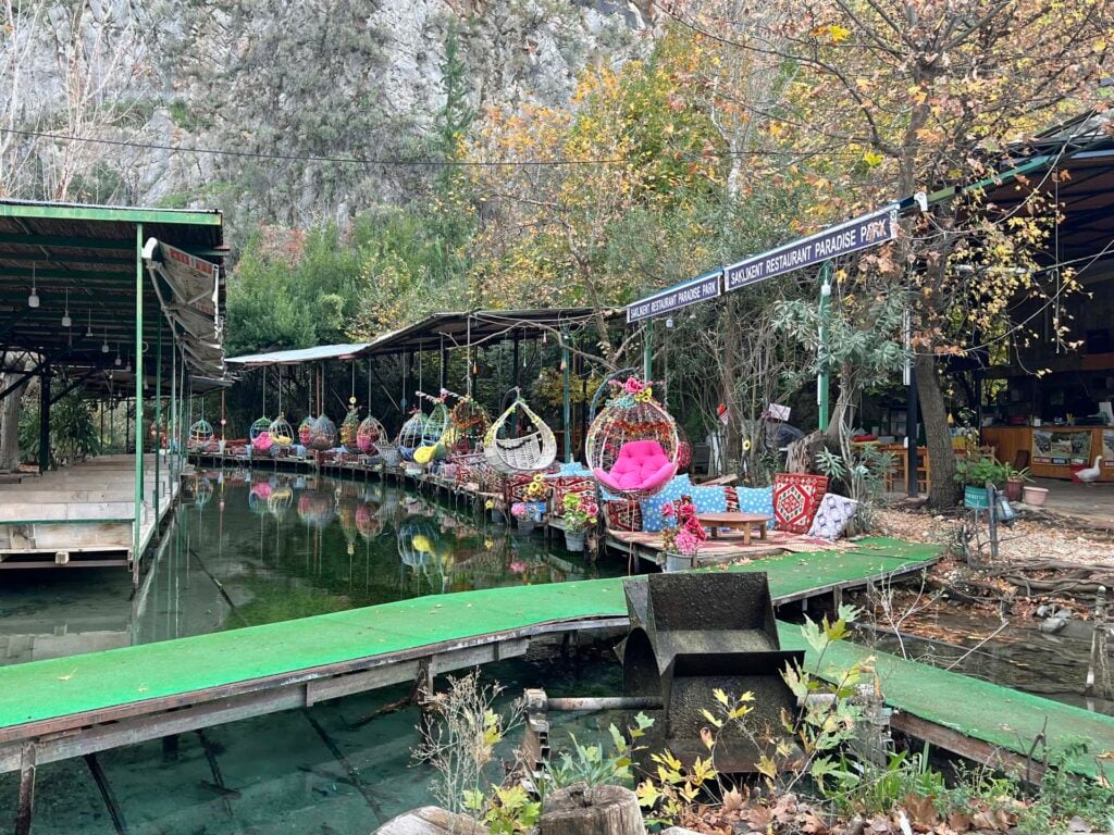 Dankzij de ligging tussen de bergen is het er zelfs in de zomer aangenaam koel, wat het een populaire bestemming maakt tijdens warme dagen. Tijdens onze kerstvakantie bezochten we de Saklikent Kloof in Turkije. In deze tijd van het jaar is de waterstand hoog en het water wild. Daardoor konden we alleen het eerste stuk wandelen. Hier is een verhoogd houten pad langs de rotswand.