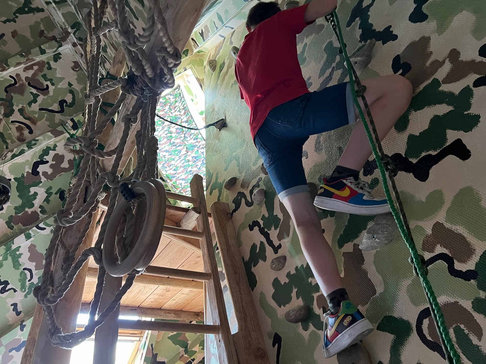 Wat is de Marinierskamer te gek! Viggo gaat meteen op onderzoek uit en klimt via de klimwand en touwen omhoog naar de speciale verstop plek voor kids. De Marinierskamer is schoon, ruim en hoog. Het is fijn een apart zitgedeelte te hebben op de kamer.