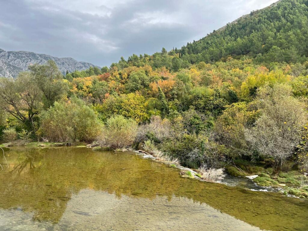 Voor de lunch vinden we een bijzonder plekje: een oude molen met uitzicht op een kleine waterval, bijna een mini-Kravice. We eten buiten terwijl het water onder ons doorstroomt.