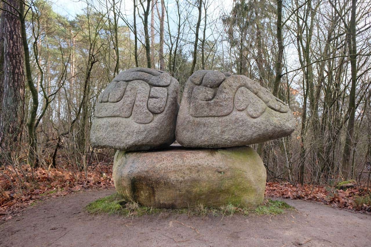 Ik vroeg me af of je de route niet kunt voltooien als je niet alle opdrachten doet, maar dat is gelukkig dus niet zo. Wat wel blijkt uit het feit dat we de laatste opdracht als eerste deden. Het Hunzebos is een mooi bosgebied en we komen regelmatig andere wandelaars en mountainbikers tegen. Bij de spelopdrachten hoeven we gelukkig nooit te wachten. In de zomer is dat wellicht anders. Op de route ligt ook een grafheuvel en een hunebed.