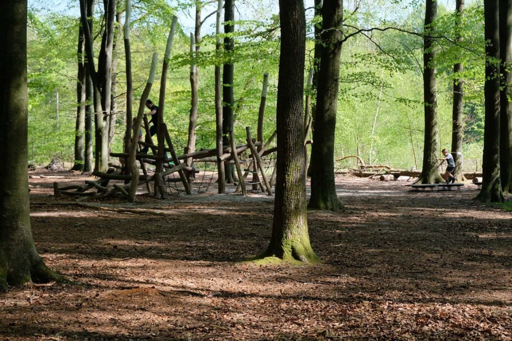Er is een lange speelroute met diverse speeltoestellen. Je kunt hier een klim en klauterparcours volgen. Ook is er een kabelbaan. We even flink afzetten want voor je het weet hang je stil boven het watertje. Tijdens ons bezoek was het speelbos een beetje overgroeid maar sindsdien heeft het een opknapbeurt gehad waardoor het nu een meer open karakter heeft gekregen.
