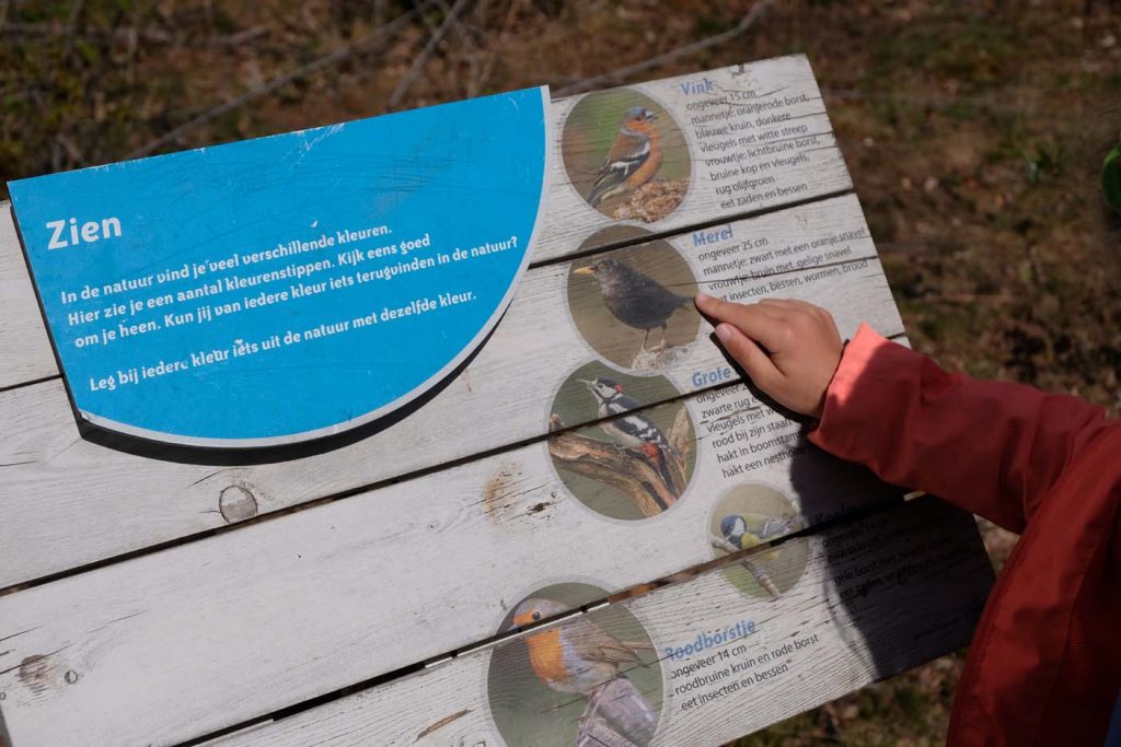Een wandeling van ongeveer 1 kilometer. Onderweg kom je langs een aantal speeltoestellen die te maken hebben met de zintuigen: horen, ruiken, proeven, voelen en zien. Aan heet einde is er ook nog een speelbos met een picknickplek. De wandeling over een landgoed met een watertje vonden wij ook erg mooi. Lees hier ons blog over het Roekpad.
