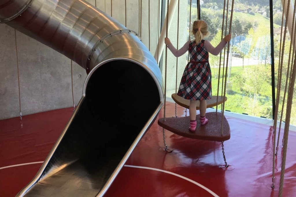 Hoogtepunt voor onze dochter is toch wel de springtoren. Een grote toren helemaal vol met netten en trampolines waar in geklommen en geklauterd kan worden. Hoewel ik denk dat Swarovski Kristallwelten het leukste is met mooi weer kun je hier dus ook binnen spelen als het nodig is.