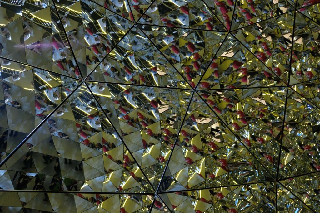 Voor we naar binnen lopen komen we eerst langs de grote reus met watervallen. Hier moet natuurlijk wel even een foto worden genomen. Daarna lopen we het museum binnen, hoewel museum eigenlijk niet de juiste omschrijving is. Er zijn verschillende ‘wonder kamers’ waarin met behulp van heel veel glimmertjes een surrealistische wereld is gecreëerd.