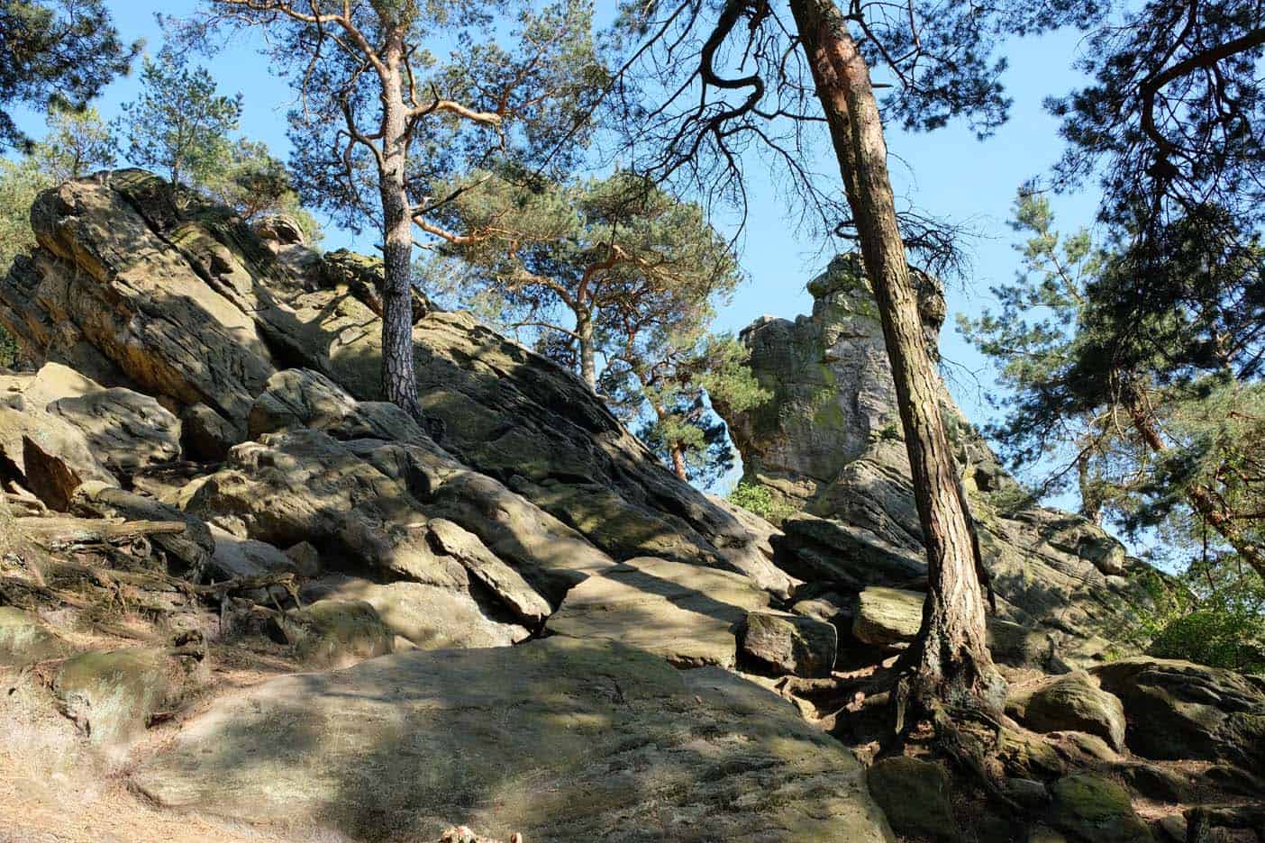 Net buiten Ibbenbüren kun je een hele mooie wandeling maken van ongeveer 5km naar de Dörenther Klippen. Niet zo beroemd als de Externsteine, maar veel dichterbij en ook hartstikke mooi. De hoge rotsen in het bos nodigen uit om te klimmen.