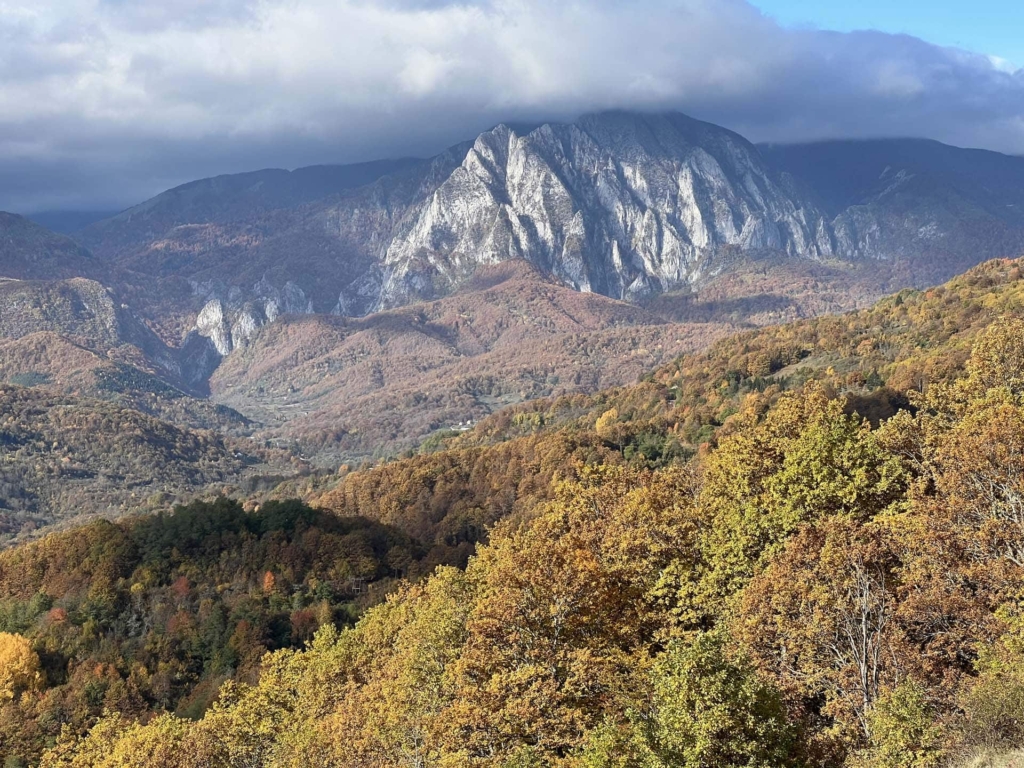 Voor het zover is moeten we nog wel een klein uur in de auto. Over de onverharde weg naar de ‘Prijevor parking’ op ongeveer 1.660 meter hoogte. Dit kan met een gewone auto, als je een beetje hoge wegligging hebt en zelf ook wel wat ervaring met lastige wegen. Naar onze Skoda fabia wordt zowel door de verhuurder van onze accommodatie als door de medewerkers van het restaurant nogal sceptisch gekeken. Daarom huren we uiteindelijk een jeep met chauffeur. Achteraf gezien denken we dat de Skoda het wel gekund had, maar dan was het wel een uur billenknijpen. Een groot nadeel van de herfst is ook dat er veel bladeren en plassen op de weg liggen. Het is daardoor erg lastig inschatten hoe diep kuilen zijn.
