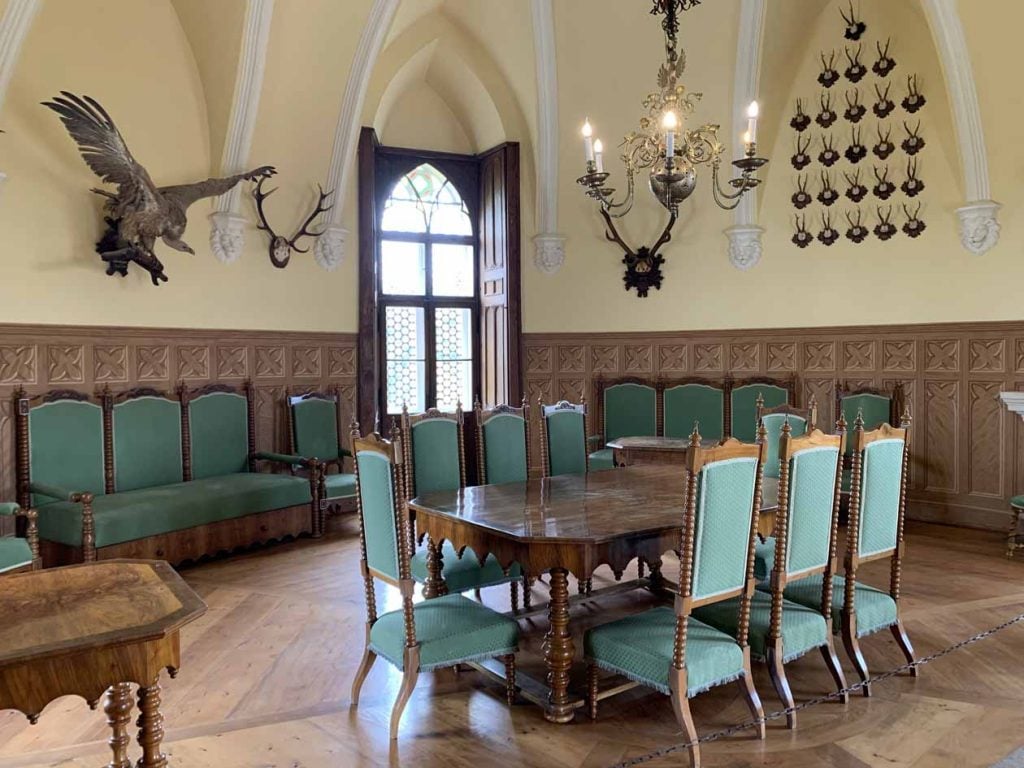 Het kasteel is dan ook de eerste plek die we bezoeken in Trakošcan. Jammer genoeg mag je binnen niet fotograferen. Er is een route door een aantal kamers en er zijn Engelstalige bordjes die meer informatie geven. Zo komen we door een historische slaapkamer, eetkamer en de ontvangstzaal. De inrichting is afwisselend en doordat we op ons eigen tempo kunnen rondlopen, blijft het interessant ook voor onze dochter.