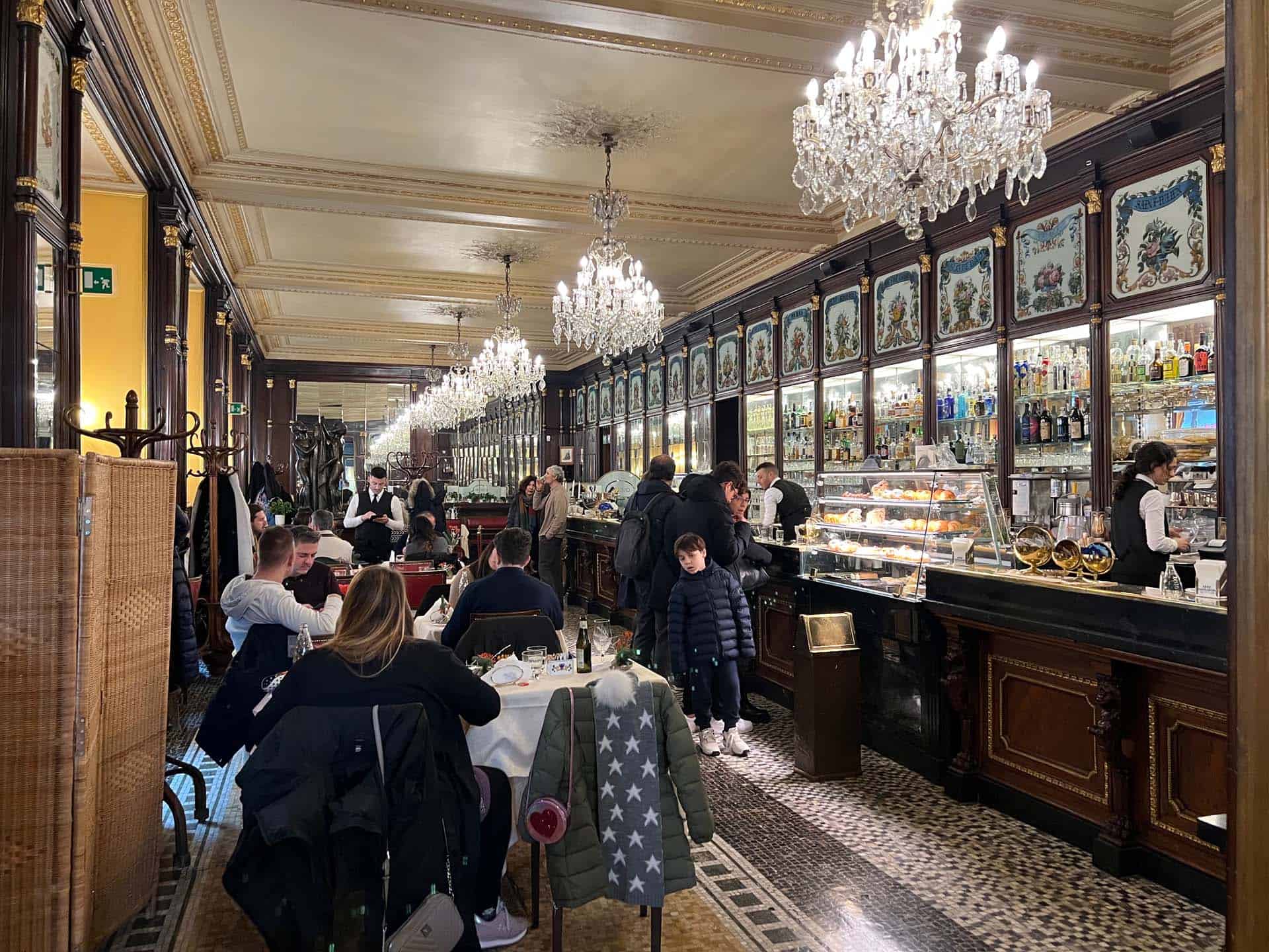 In Galleria Subalpina bevindt zich Baratti e Milano, een van de klassieke koffiebars van Turijn die hier sinds 1875 is gevestigd. Het interieur van de koffiebar is prachtig met veel spiegels, marmer en brons. Wij moesten wel even in de rij staan voor een tafeltje, want een bezoek aan deze koffiebar is geliefd. Maar het was zeker het wachten waard: de koffie en zelfgemaakte taartjes waren heerlijk. Heb je geen zin om in de rij te staan, dan kun je ook je koffie aan de bar opdrinken.