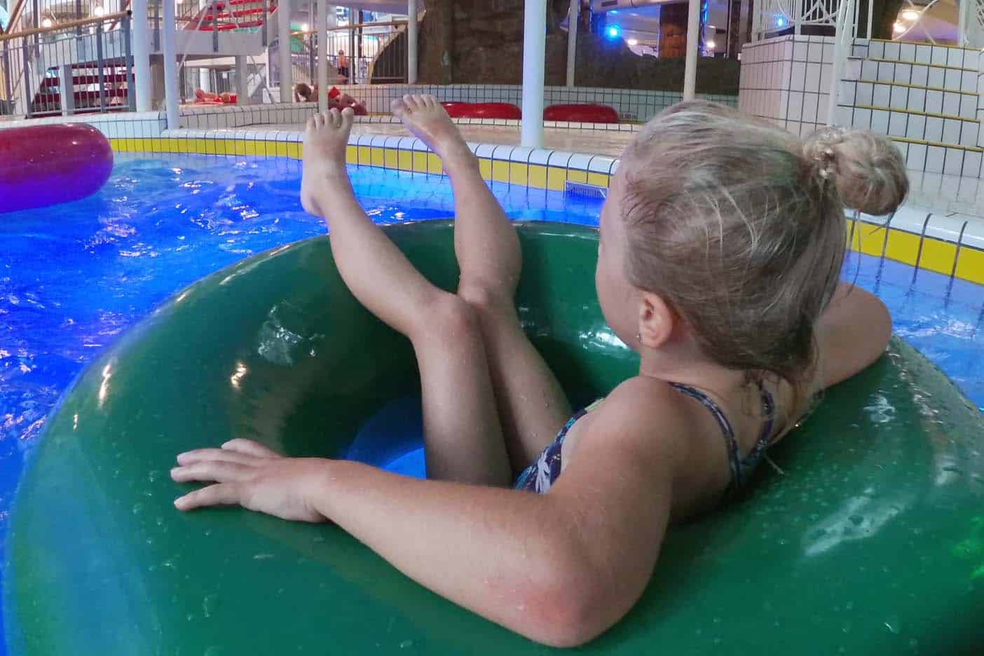 Ook de Lazy River valt in de smaak. Hier kun je alleen of met zijn tweetjes in een band een rustig rondje varen door Duinrell. Voor wat meer actie zoeken we het golfslagbad op. Regelmatig gaat er een toeter en dan weten we dat het weer begint te klotsen. Verder zijn er ook nog enkele bubbelbaden.